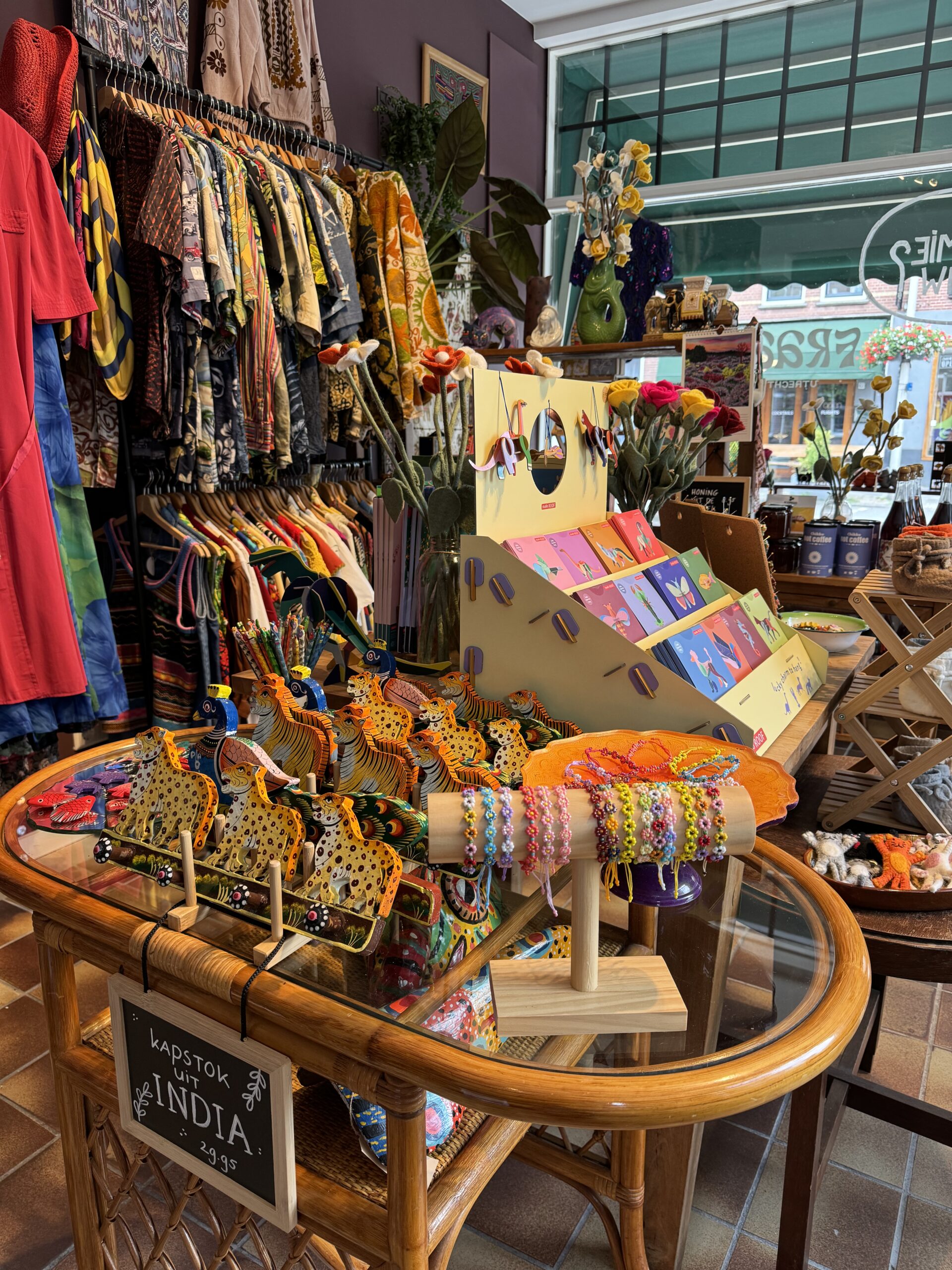 Bij ons vind je met zorg geselecteerde vintage pareltjes en duurzame cadeaus die nét even anders zijn. Denk aan broccoli-sleutelhangers (ja, echt!), sokken met een goed verhaal en prachtige broches uit India.