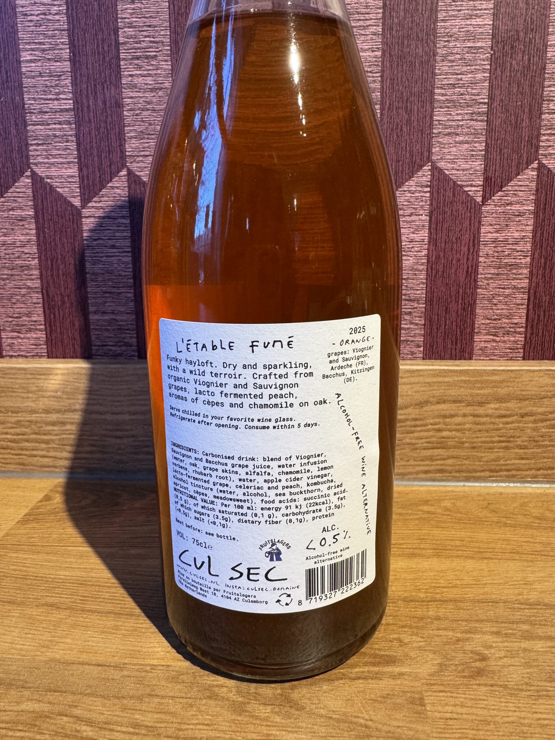 Stallig en funky. Droog en bruisend, met een wild terroir. Gemaakt van biologische Viognier en Sauvignon druiven, lacto-gefermenteerde perzik, aroma’s van eekhoorntjesbrood en kamille op eik.