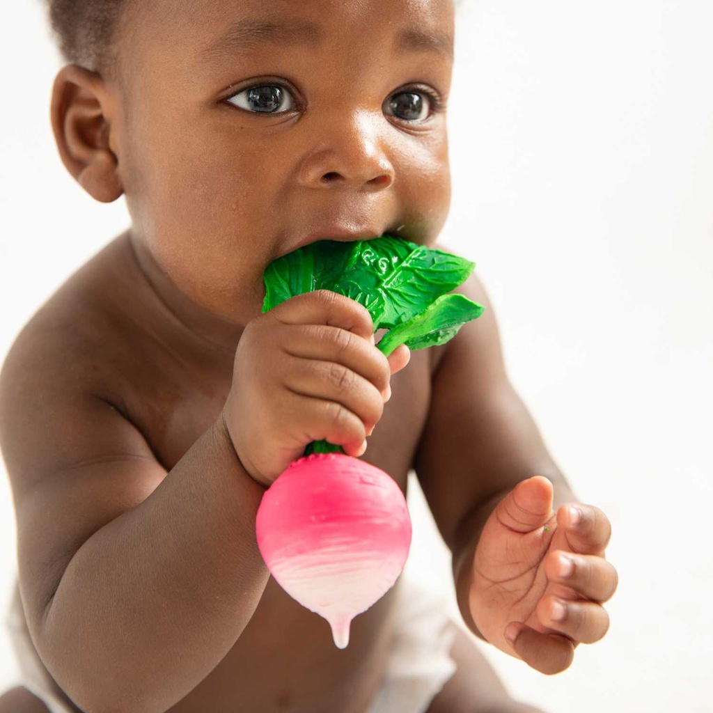 Je kunt de kleintjes niet vroeg genoeg kennis laten maken met gezond eten. Laat ze daarom spelen met het bijtspeelgoed van Oli&Carol. Ideaal wanneer de tandjes doorkomen.