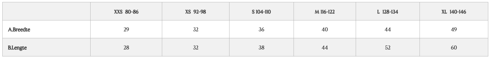 Maat 80-86 t/m 104-110 hebben 1 knoopje (vallen klein uit, dus bestel een maatje groter)