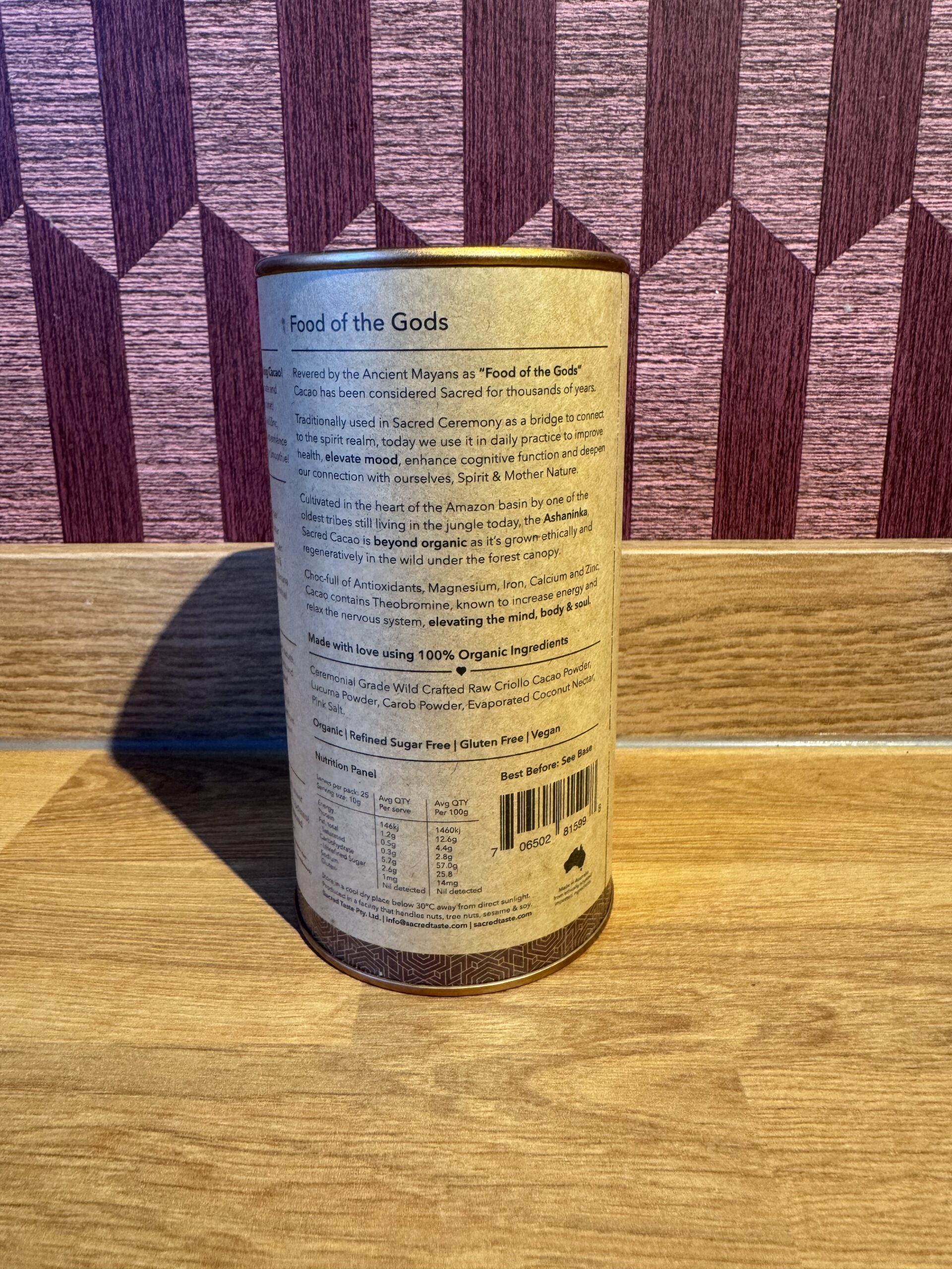 Ingrediënten: Biologisch ceremonieel cacaopoeder van Criollo, biologische johannesbroodpitmeel, biologische lucuma poeder, biologische kokosnectar en Himalayazout.