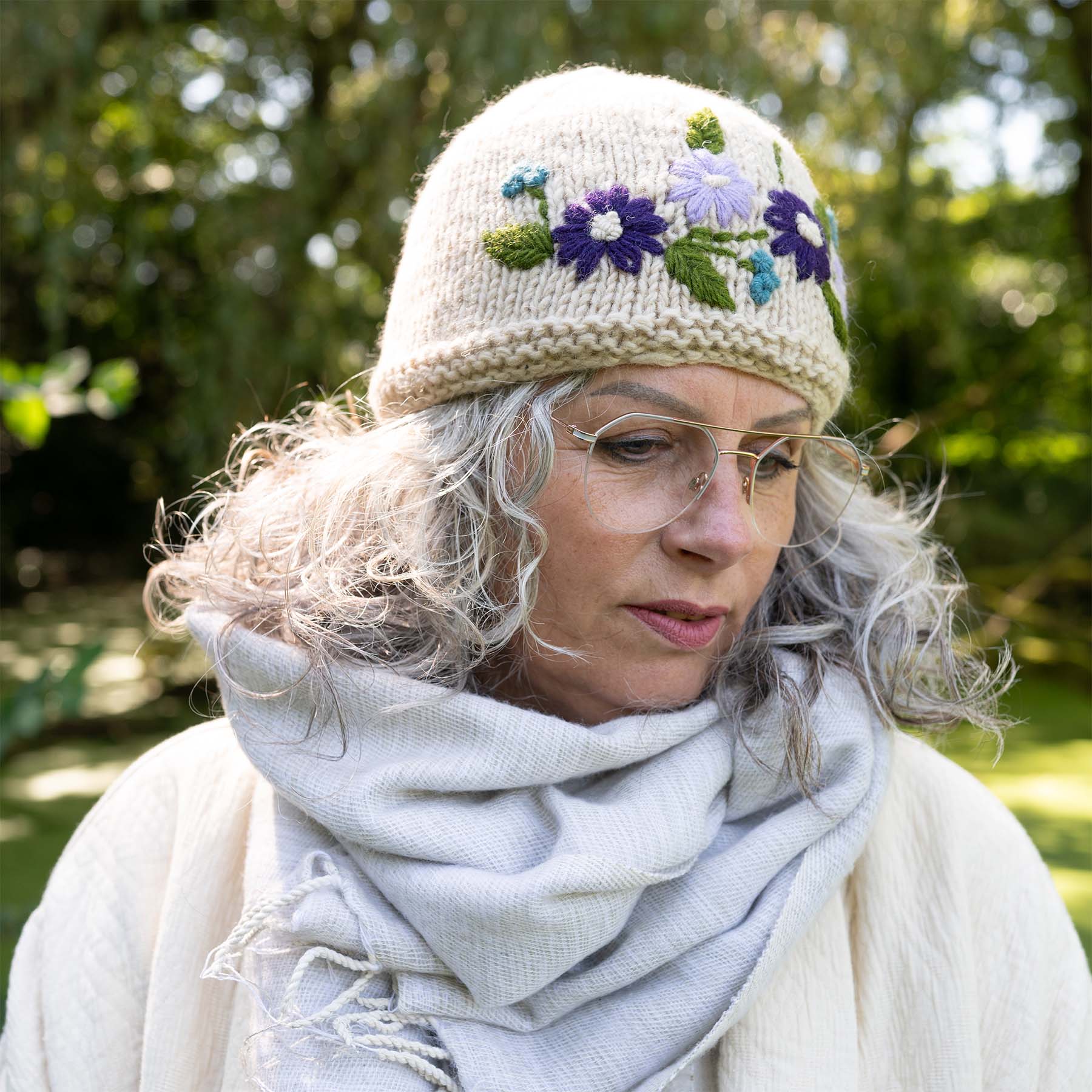 Geborduurde muts van wol gevoerd met fleece.