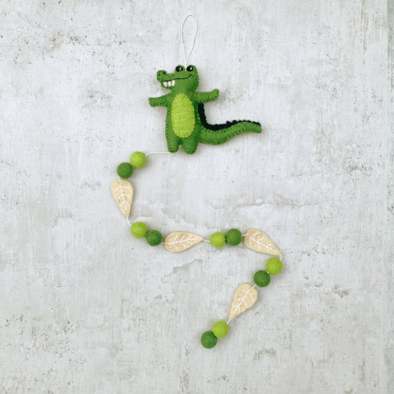 Schattige slinger met een krokodil. Perfect voor op de kinderkamer of als kraamcadeau.