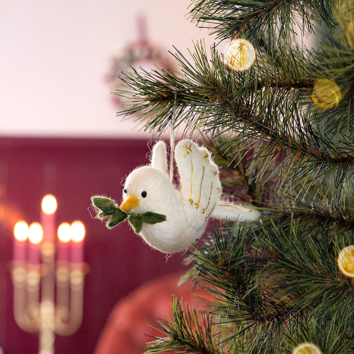 Hang de vredesduif in de kerstboom of voor het raam (Peace now!)
